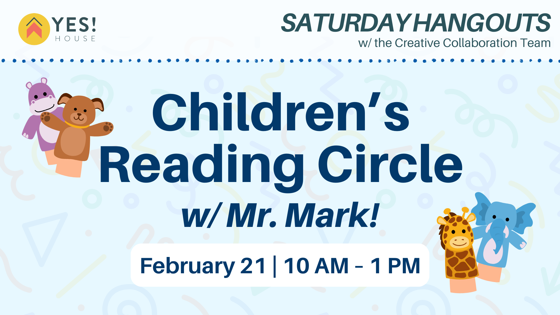 Join Mark (aka Mr. Mark from Echo Charter School's "READERS ARE LEADERS" Program) at The YES! House tomorrow (Saturday, February 21) from 10 AM – 1 PM for a Saturday morning children's reading circle!